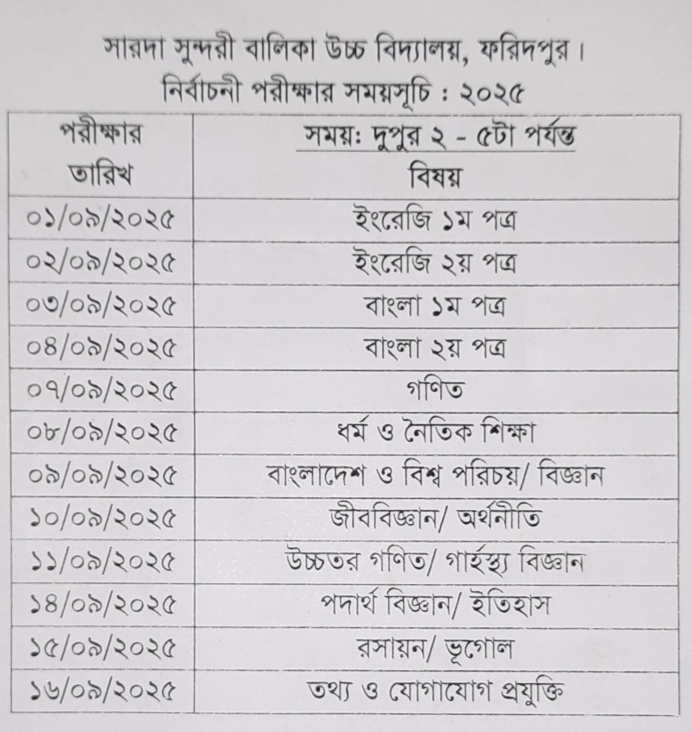 বার্ষিক ও নির্বাচনী পরীক্ষার রুটিন -২০২৫